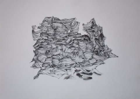 Island, 2020, 30 x 41 cm, blyant på papir, pris 2800,- (incl. ramme/passepartout) |  Light, 2020, 30 x 41 cm, blyant på papir, pris 2800,- (incl. ramme/passepartout) |  Uden titel, 2020, 30 x 41 cm, blyant på papir, SOLGT |