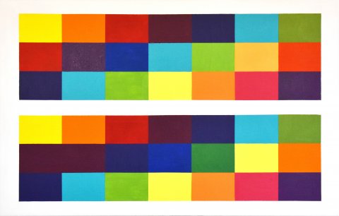 Bordeaux, 2013, 70x70, akryl på lærred. Pris 2700,- |  Gul, 2013, 70x70, akryl på lærred. Pris 2700,- | |